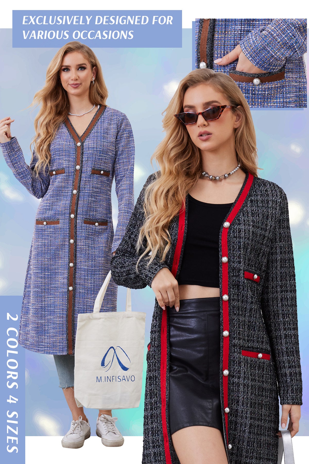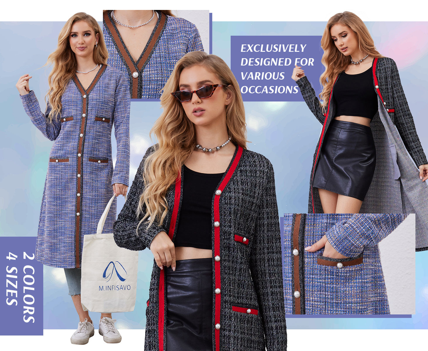 - Match: Tweed long jacket cardigan for women features a classic A-line silhouette, which can effectively enhance body lines and increase your personal charisma.