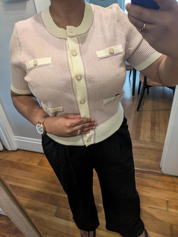 - Distinct Rich Textured: This knitted short-sleeve top shirt features a noticeably substantial and richly textured fabric.