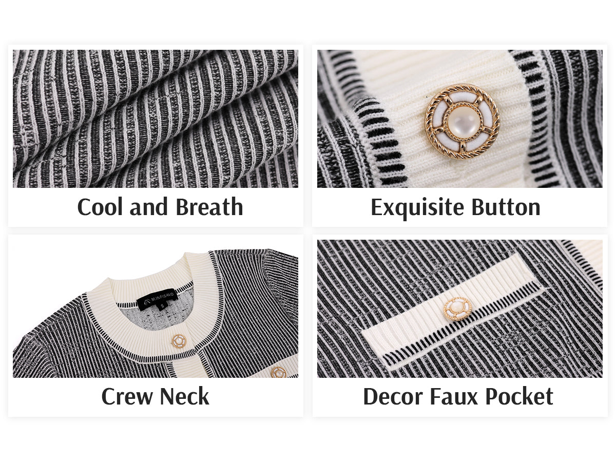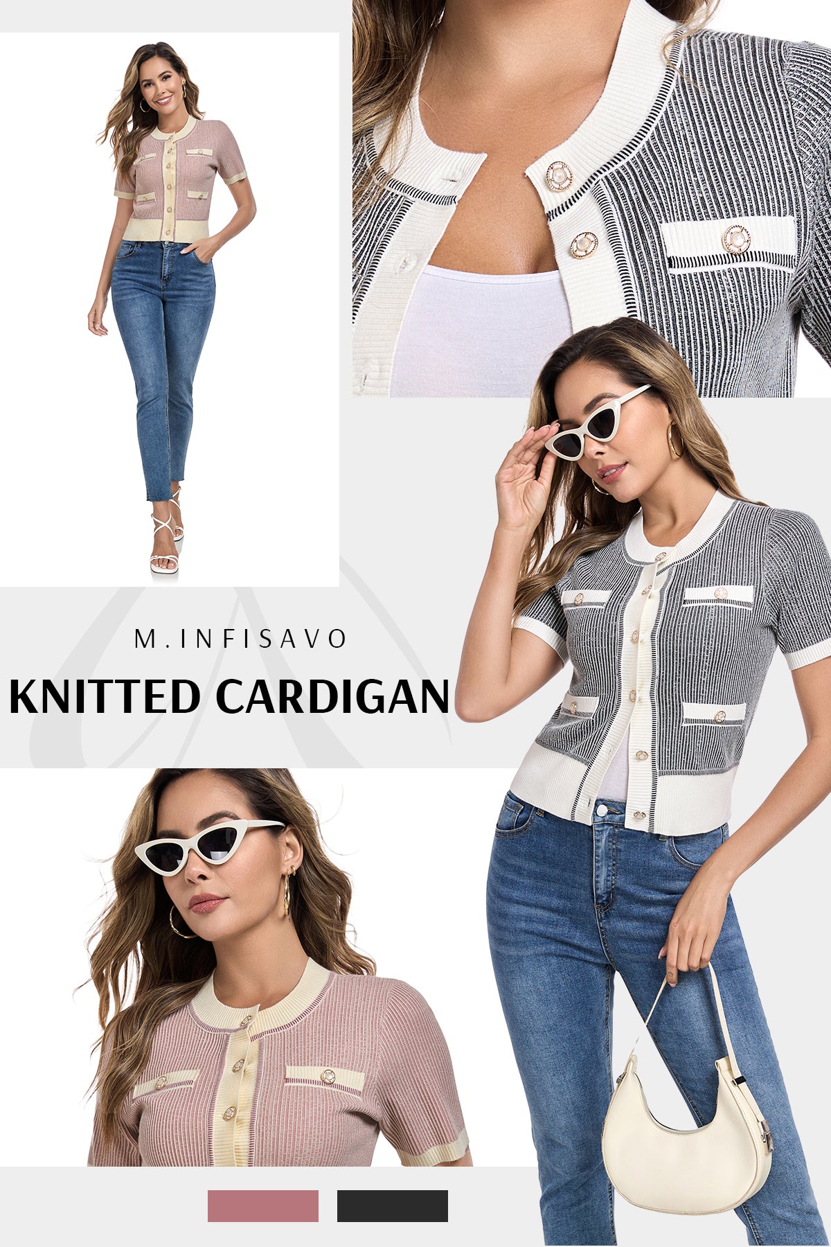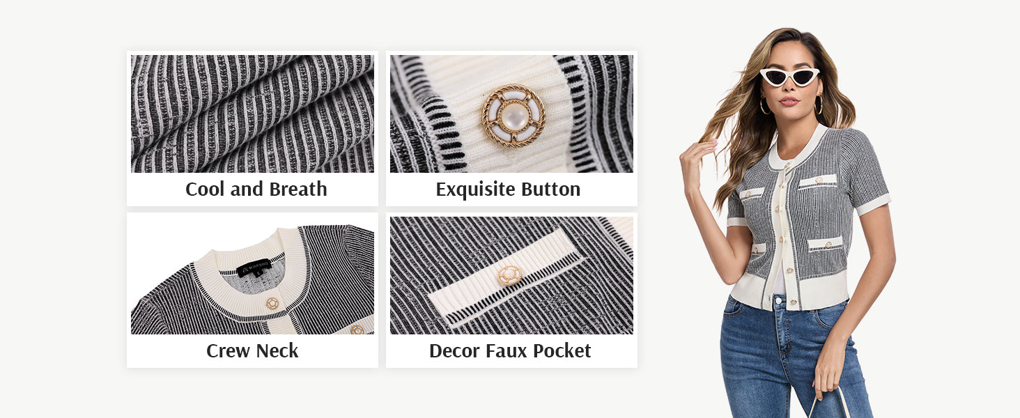 - Classic Chic Style: Cropped design makes you look neater and crisper. This short sleeves round neck faux-pocket retro sweater cardigan shirt top is a classic piece and a not to be missed wardrobe items.