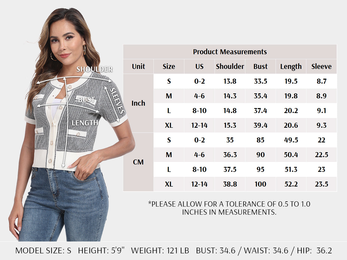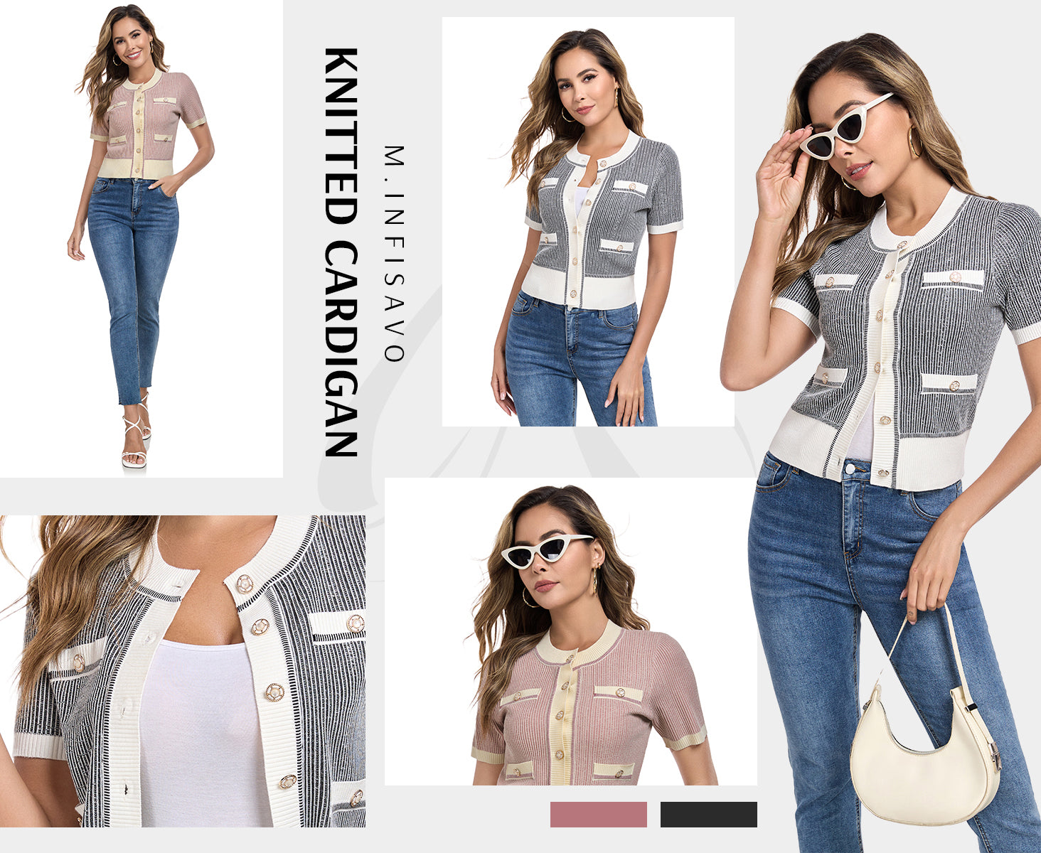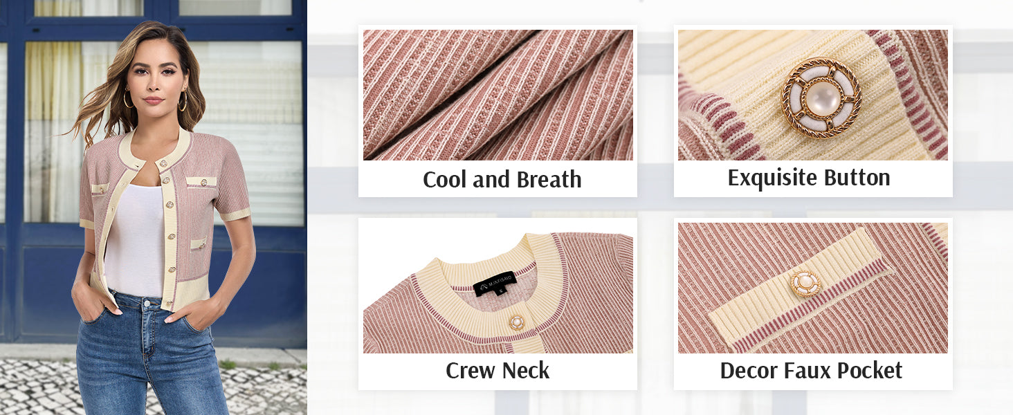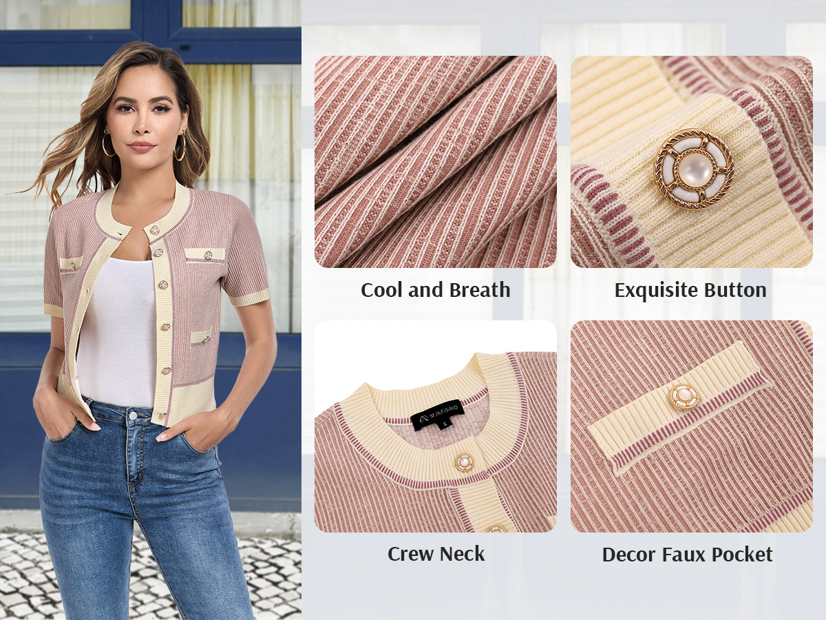 - Classic Chic Style: Cropped design makes you look neater and crisper. This short sleeves round neck faux-pocket retro sweater cardigan shirt top is a classic piece and a not to be missed wardrobe items.