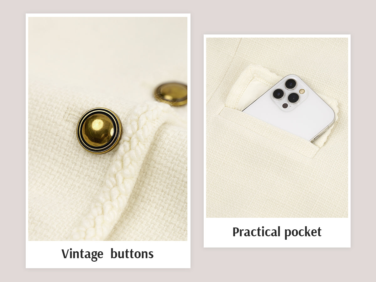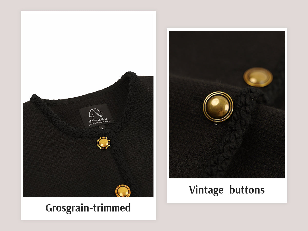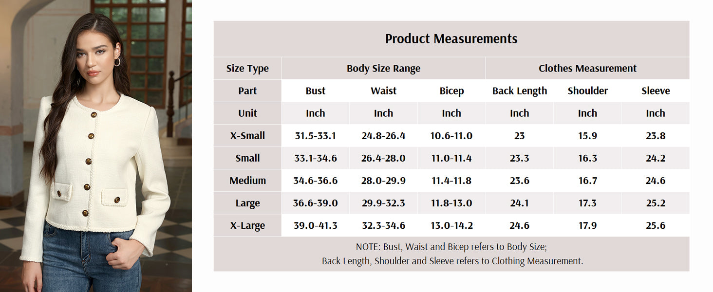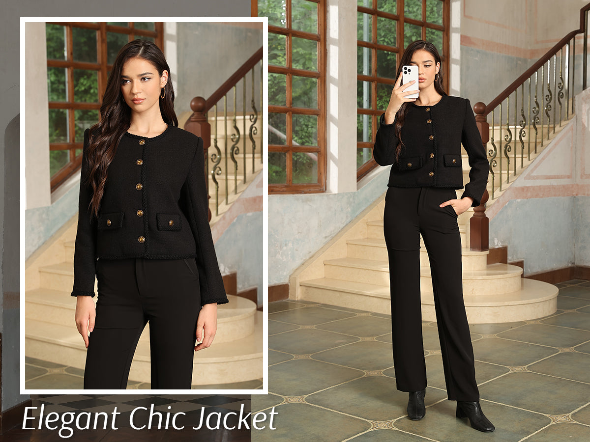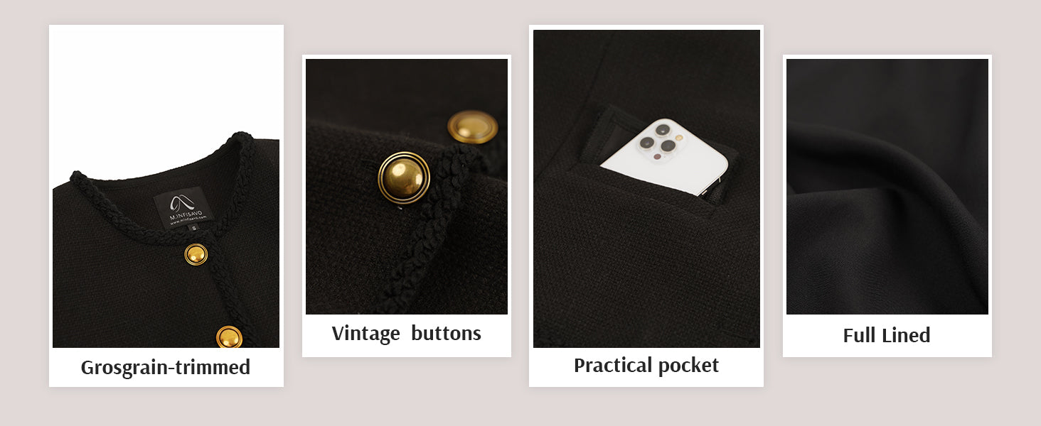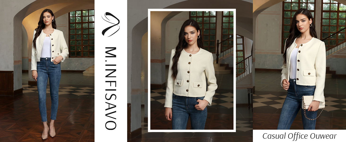 - Womens cropped jacket features with tweed fabric, turn down collared lapel, 2 functional pockets, long sleeve, vintage metal button closure, open front. 2025 classical fall shackets cardigan for petite, regular fit.