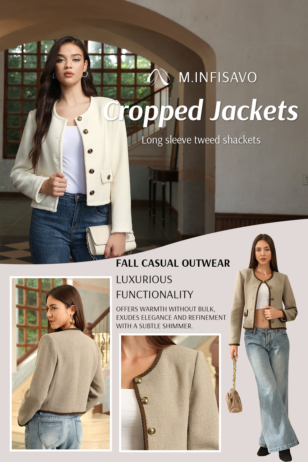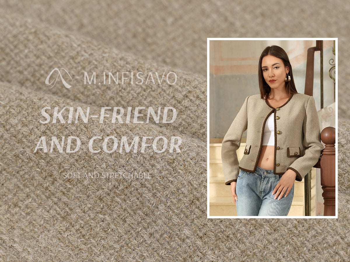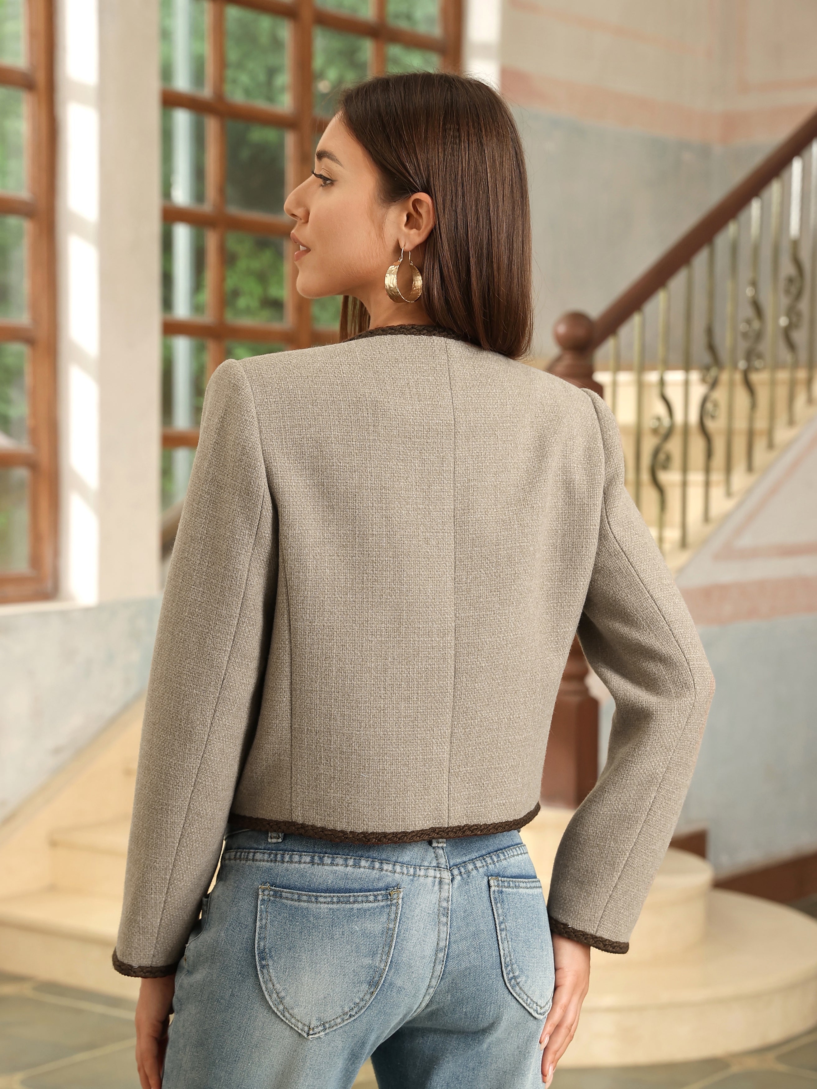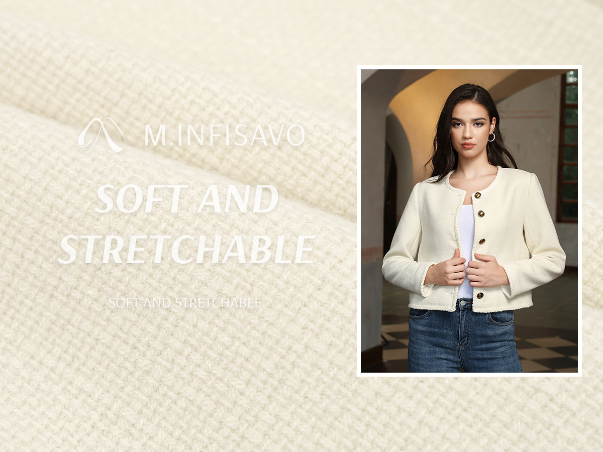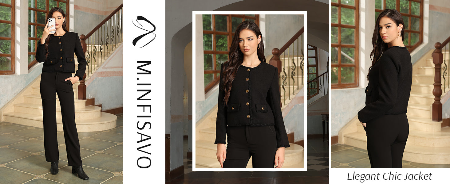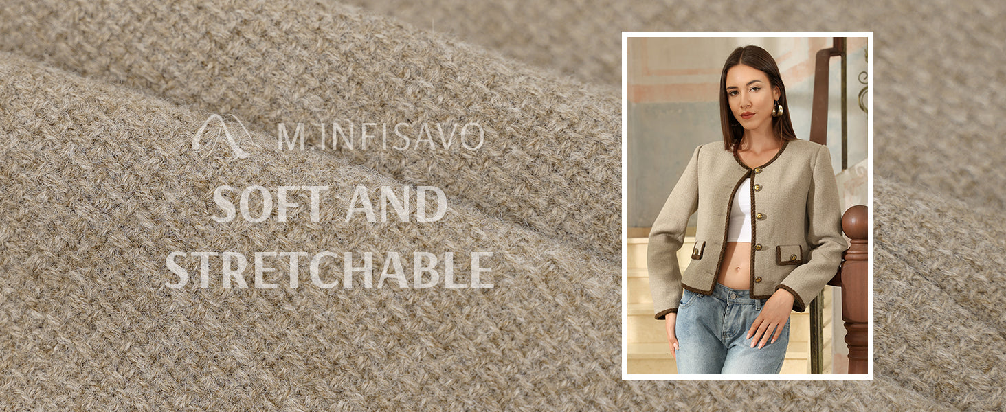 - Womens cropped jacket features with tweed fabric, turn down collared lapel, 2 functional pockets, long sleeve, vintage metal button closure, open front. 2025 classical fall shackets cardigan for petite, regular fit.