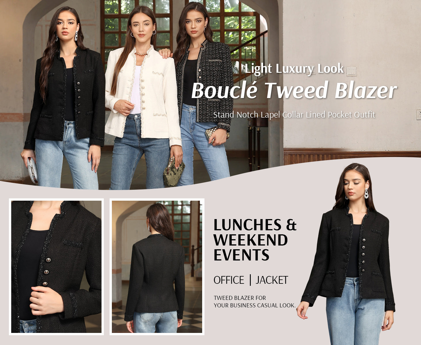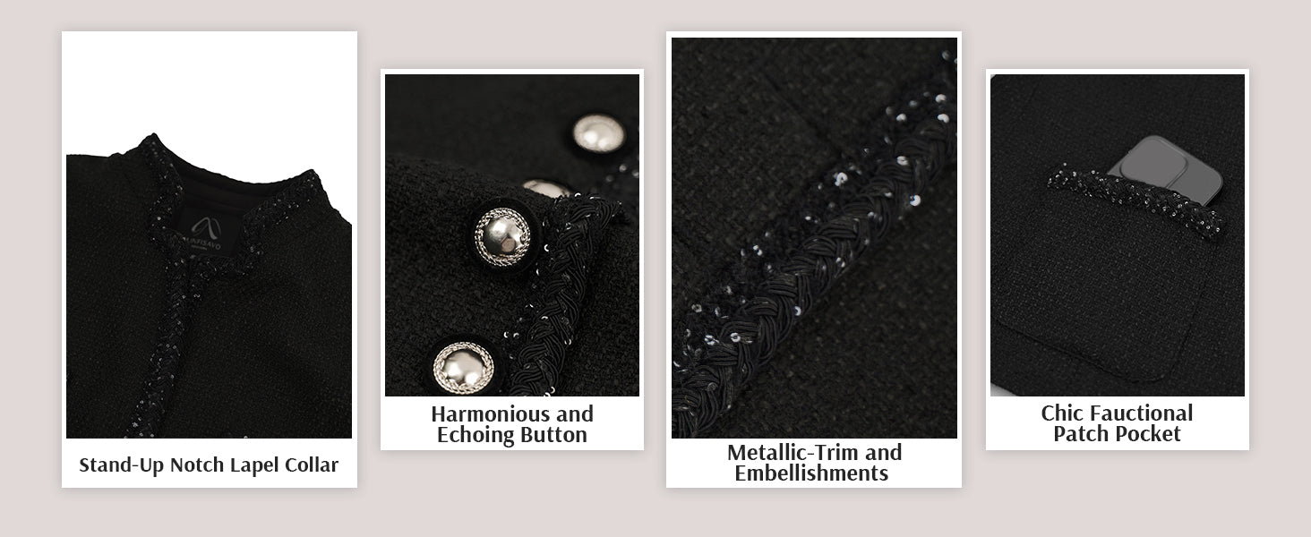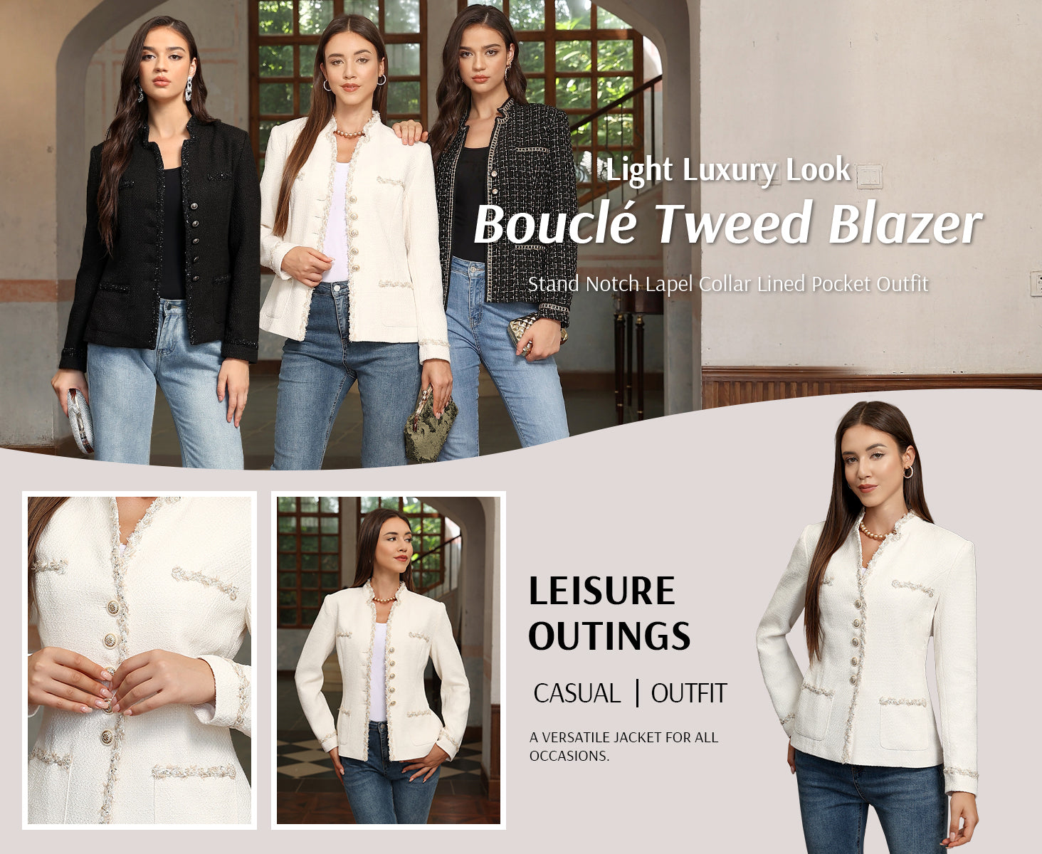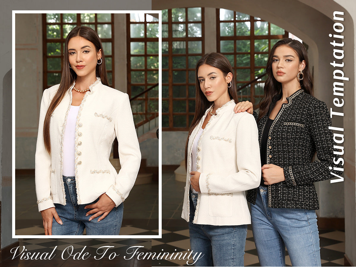 - Chic Edge/Button Details: Re-match trim and buttons for jacket of different-colors, each color has its own style. Elegant ribbon trim and buttons adorns the collar, front-placket, and two-real-pockets, adding sophistication to elevate your look.