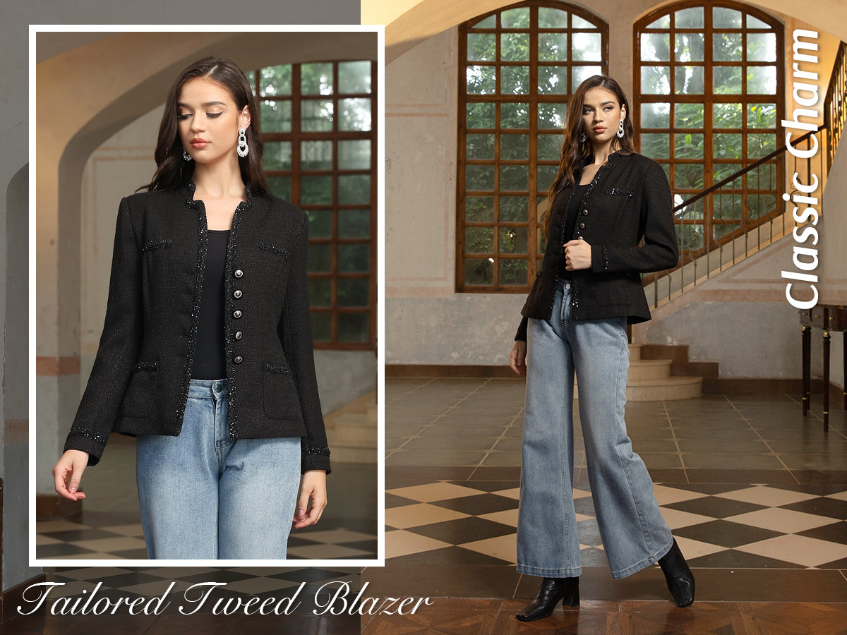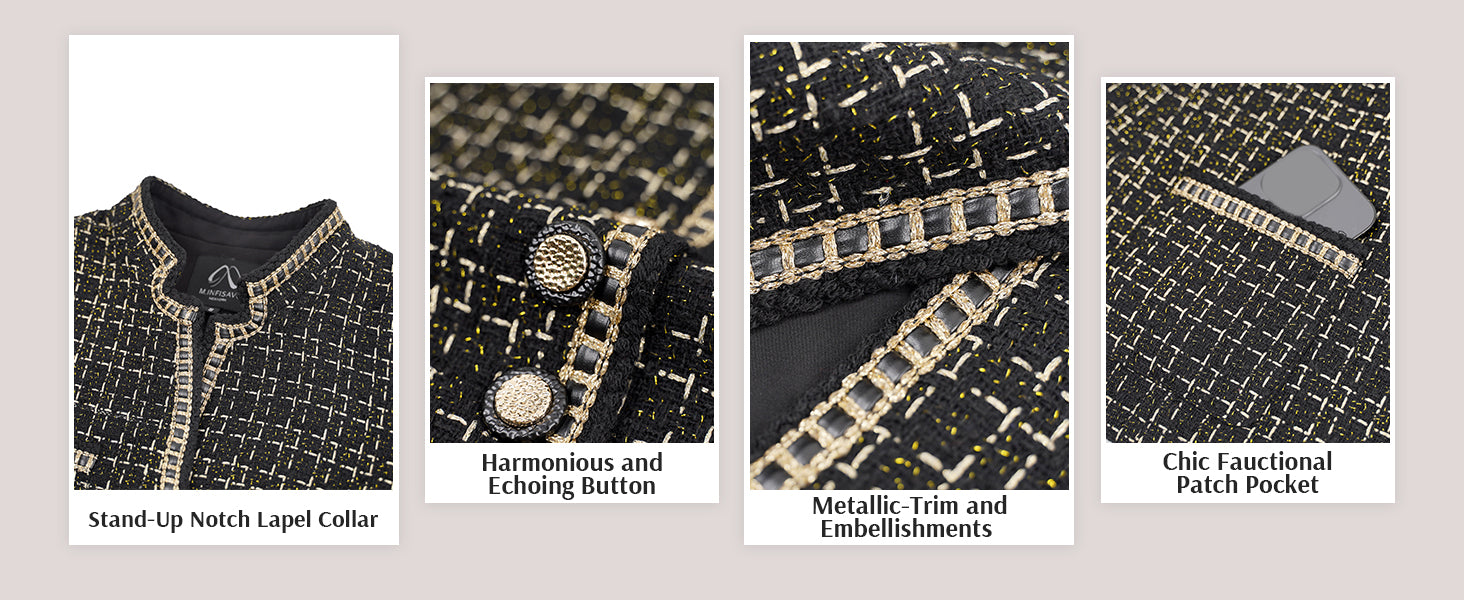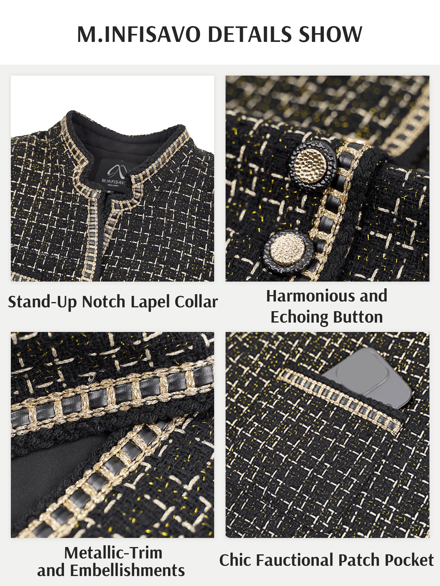 - Elegant Tweed Design: Crafted from good-quality, textured tweed fabric in a classic tightly weave, offering a timeless and elegant look, fully lined for a more comfortable feel.